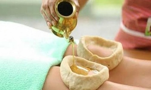 This is a popular herbal oil treatment for relieving stiffness and nourishing whole spinal area. A flour dough dam is made, filled with the appropriate herbal oil and placed on spinal area. By soaking the area in heated oil for about 40 to 45 minutes, pain, soreness and tension are relieved.